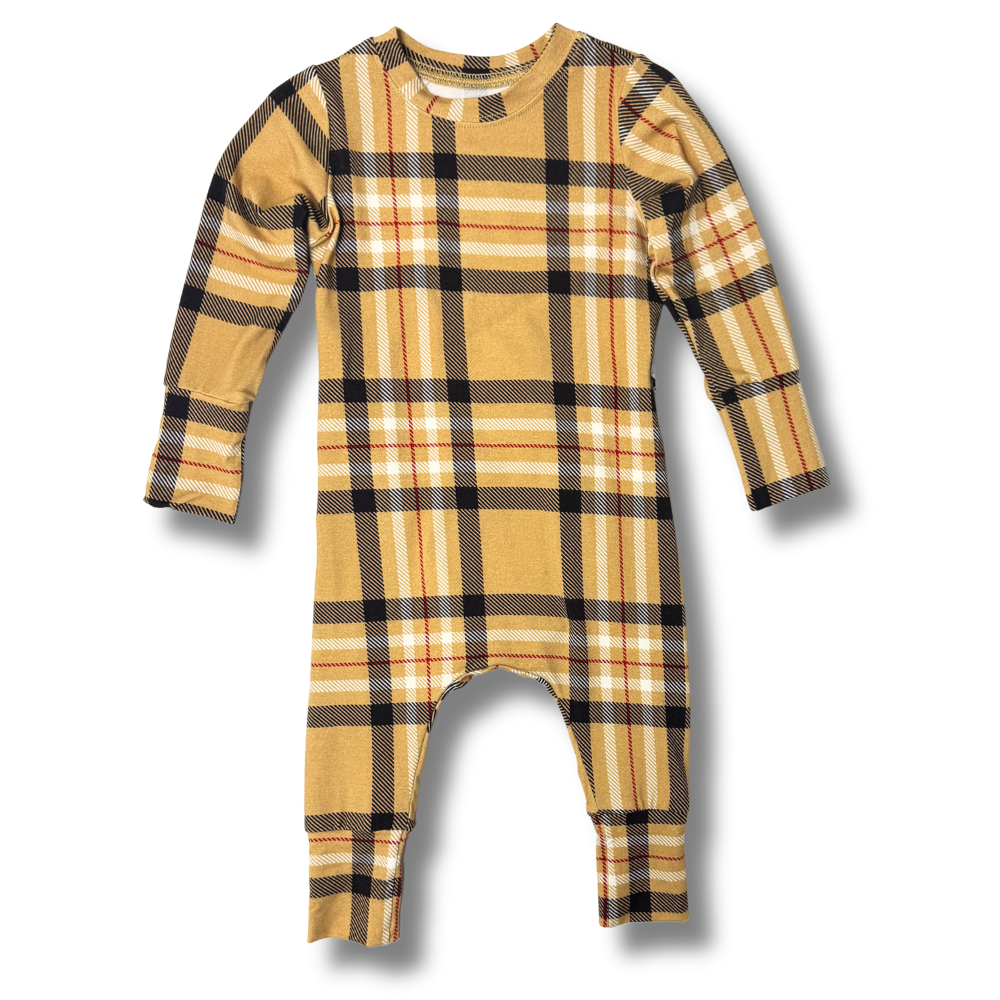 Bamboo Long Sleeve Romper in Peppermint Plaid