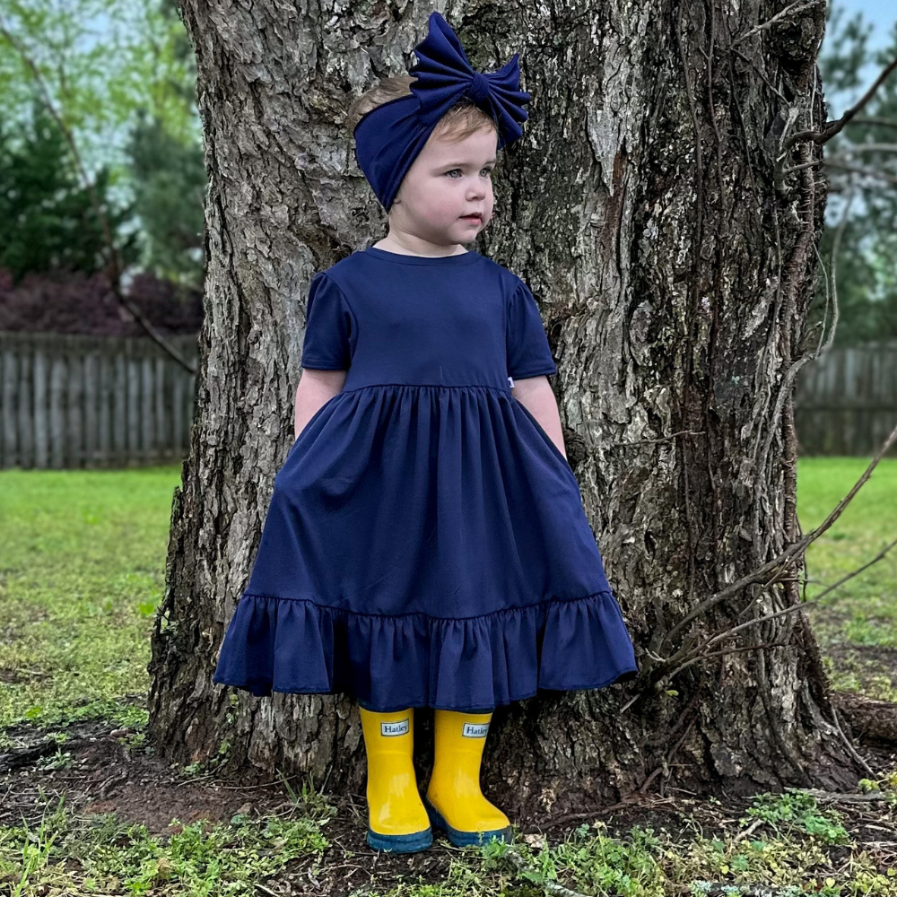 Bamboo Short Sleeve Twirl Dress in Navy