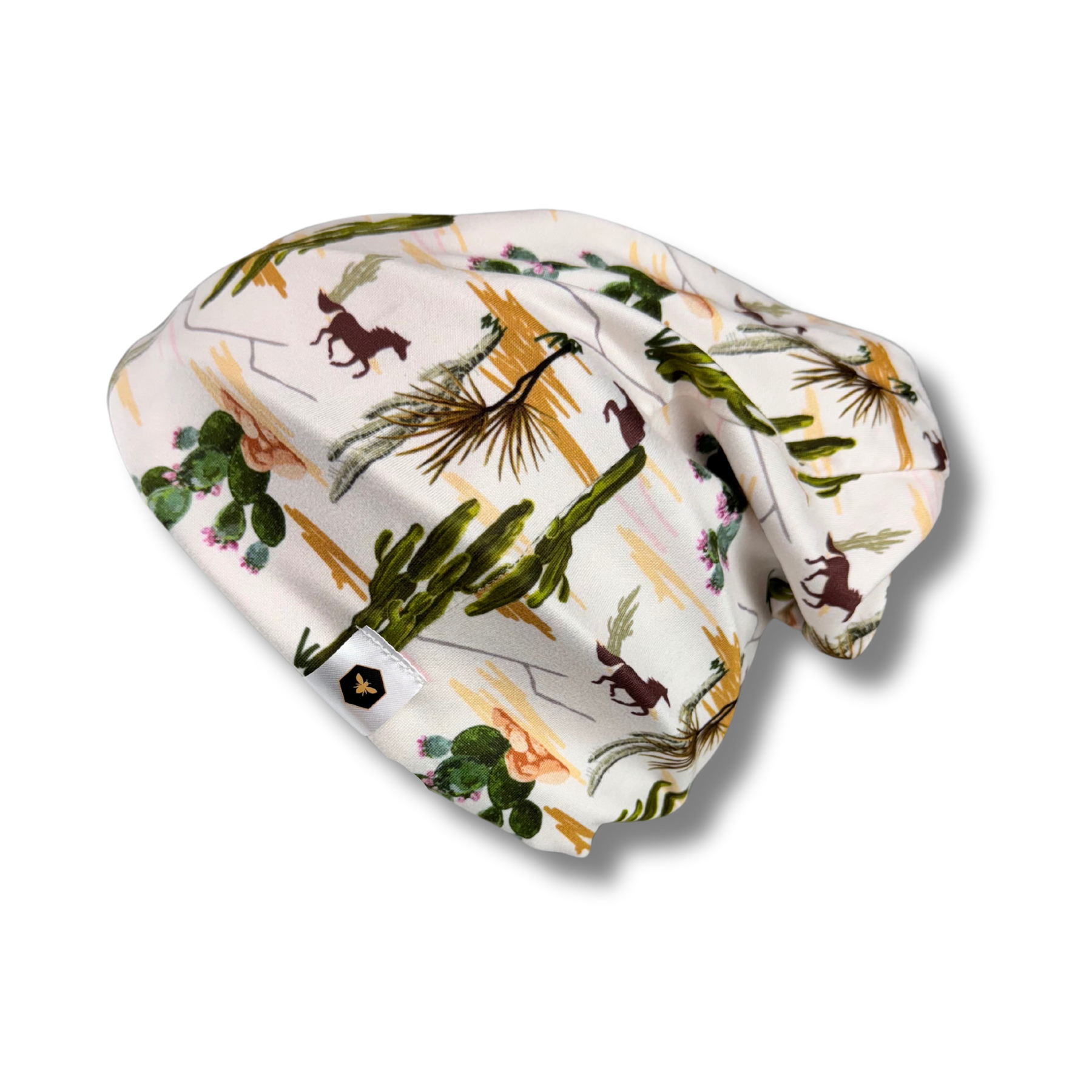 Beanies may be machine dried on low or medium heat with like fabrics. Washing or drying with rough fabrics or velcro items may cause snags or pulls.