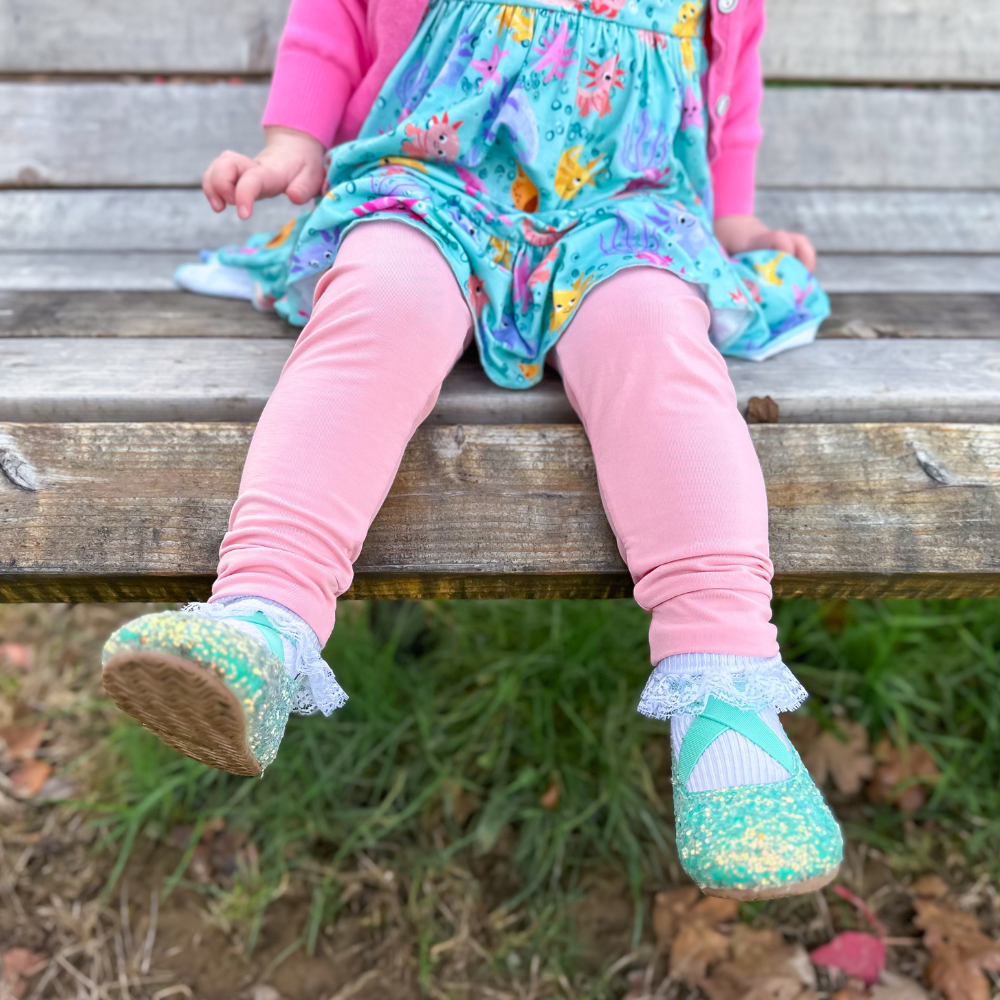 Available in sizes newborn through children’s 9/10, these eco-friendly kids’ leggings are perfect for infants, toddlers, and big kids alike. Whether worn under dresses, paired with tees, or layered for outdoor play, they’re built for comfort and movement.
