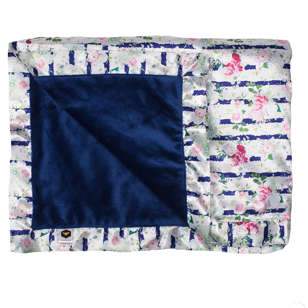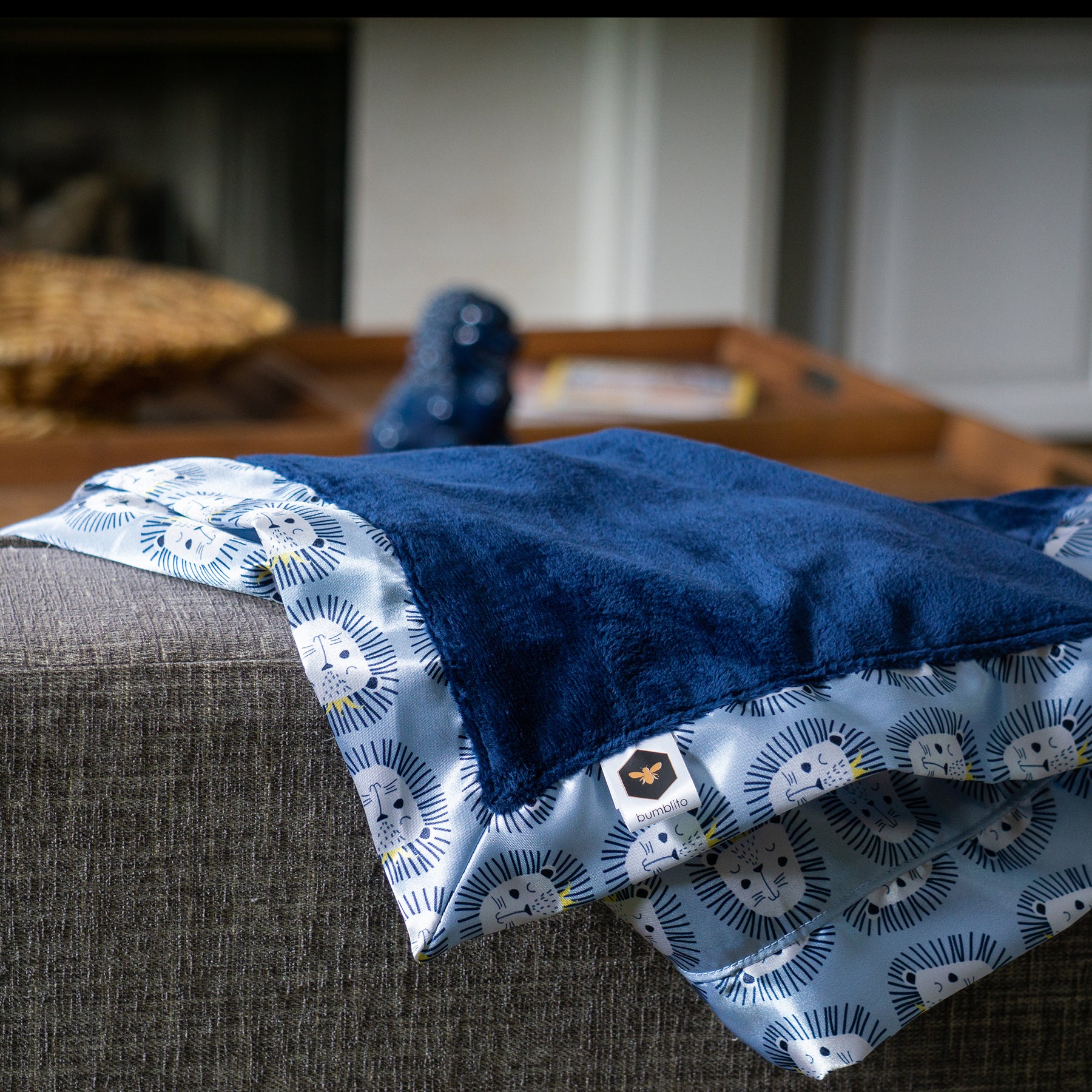 Our Luxe blankets have a plush minky side and a smooth satin back and binding. Keep the satin back against your skin on warmer nights to stay comfortable while sleeping, and keep the plush minky side against your skin on cold winter nights to stay warm. These blankets come in two sizes; the Baby Bee Luxe which is 30”x40” and the Bee Luxe which is 40”x60”. Our luxury blankets are proudly manufactured in the USA.