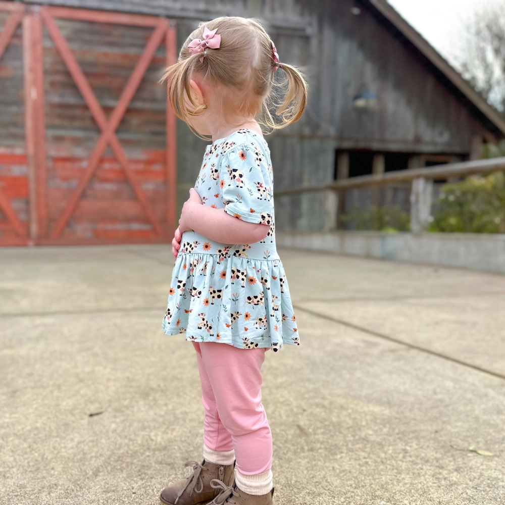 Bamboo Short Sleeve Peplum Top in Moo & You
