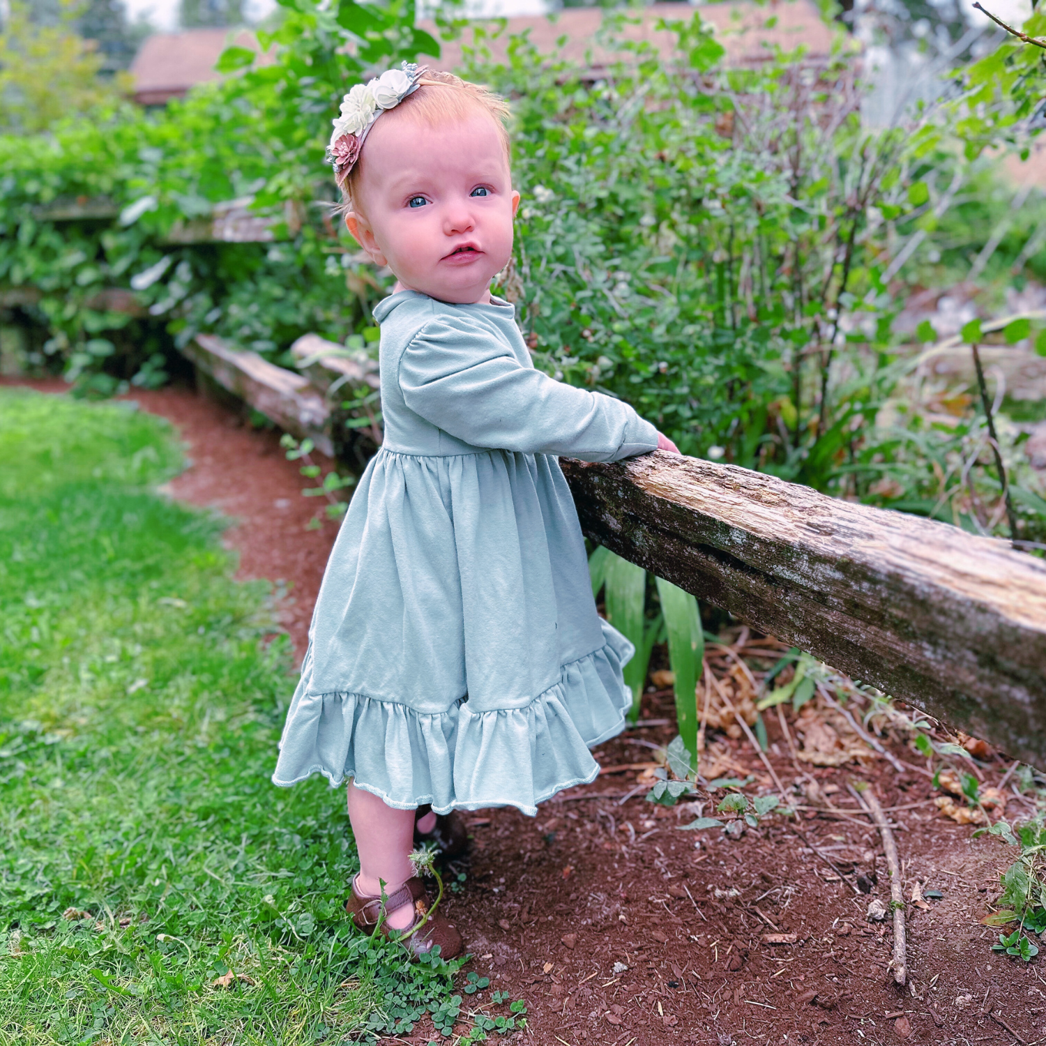 Our Naturals’ Twirl dress features a charming ruffle at the bottom that will surely inspire your little one to twirl all day long. This dress is equipped with two pockets, one on each side, ideal for keeping small treasures. Depending on the child's size, the dress should either reach the knee for those at the lower end of the size range or fall above the knee for those at the upper end.