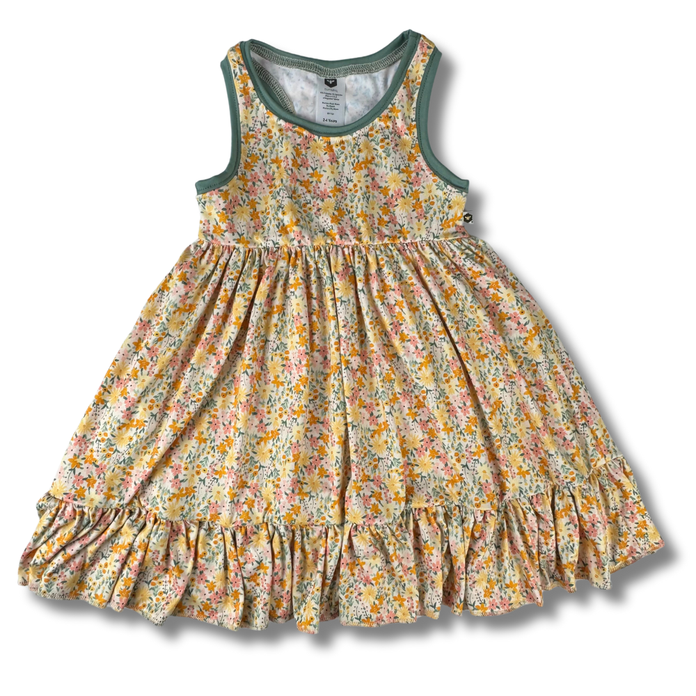 This magical dress is made from the softest poly/spandex fabric, perfect for endless adventures and countless laundry spins. With a cute tank-style top, it's a must-have for sunny playdates. The twirly ruffle at the bottom will keep your little one spinning all day long. Plus, there are two secret pockets for stashing tiny treasures. Depending on your kiddo's size, it'll hit at the knee for the little ones and slightly above for the bigger tots. Mix and match with our cartwheel shorts for the ultimate playtime ensemble!