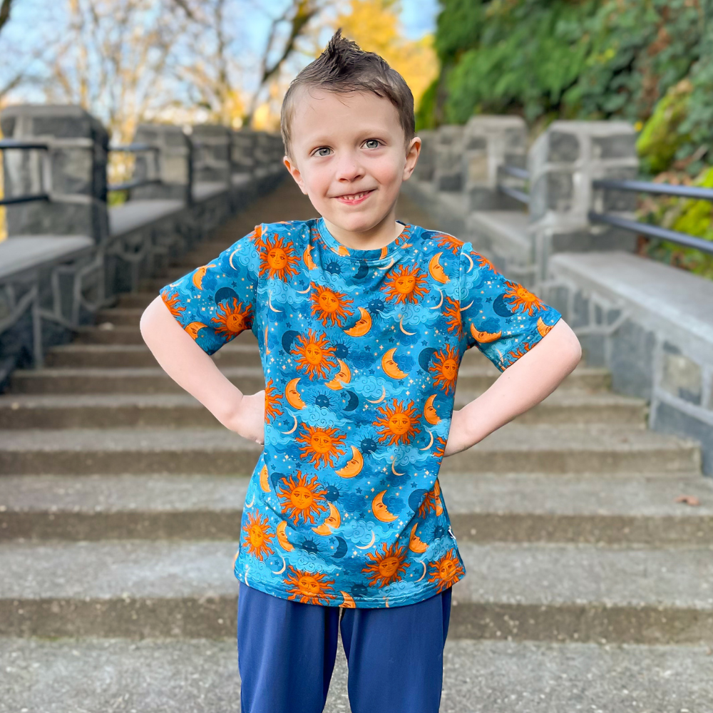 The lightweight, moisture-wicking bamboo material helps keep children cool and fresh, while its hypoallergenic qualities make it ideal for sensitive skin. Perfect as a toddler bamboo t-shirt or a go-to kids’ crew neck tee, this versatile shirt pairs easily with anything in their wardrobe.