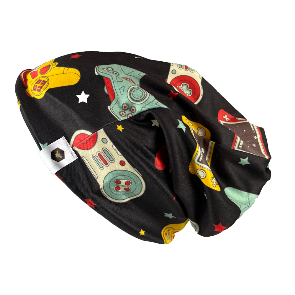 Beanies may be machine dried on low or medium heat with like fabrics. Washing or drying with rough fabrics or velcro items may cause snags or pulls.