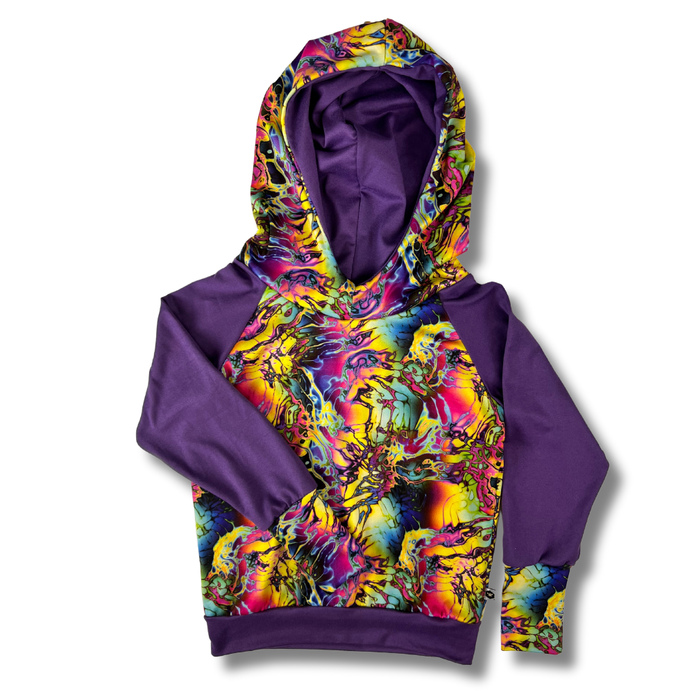 Hoodies may be machine dried on low or medium heat with like fabrics. Washing or drying with rough fabrics or velcro items may cause snags or pulls.