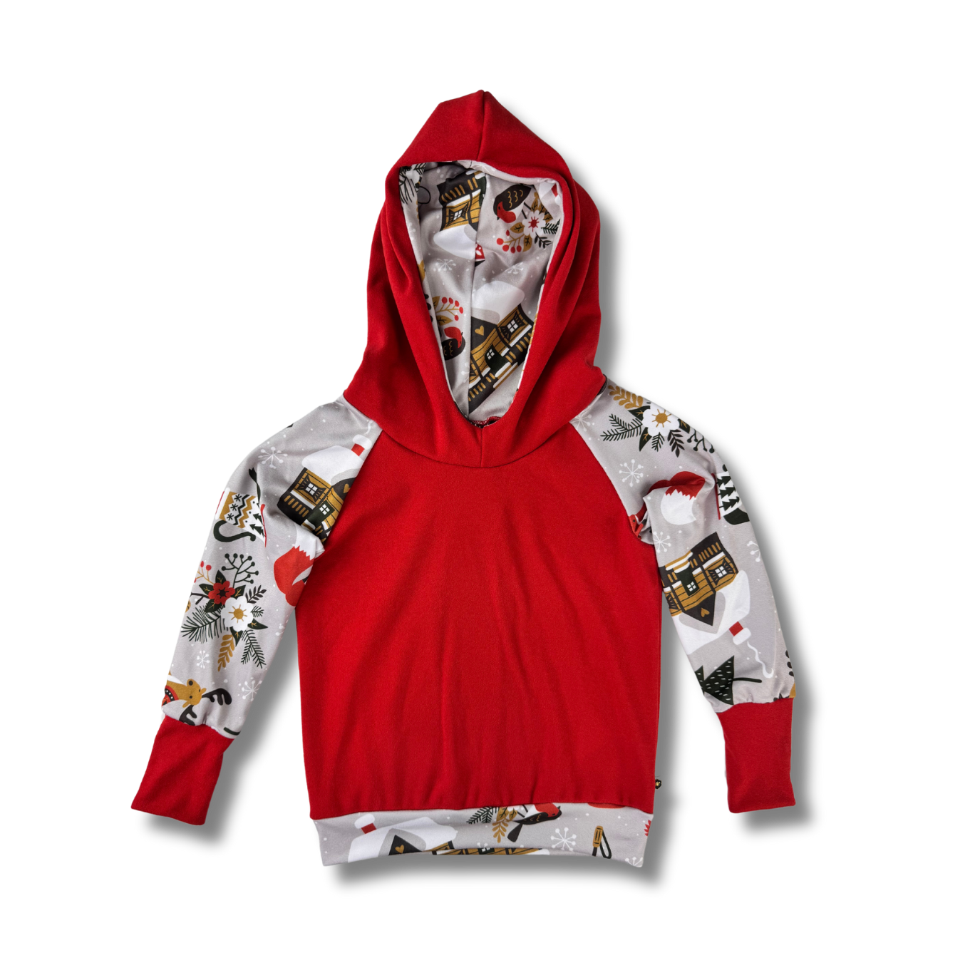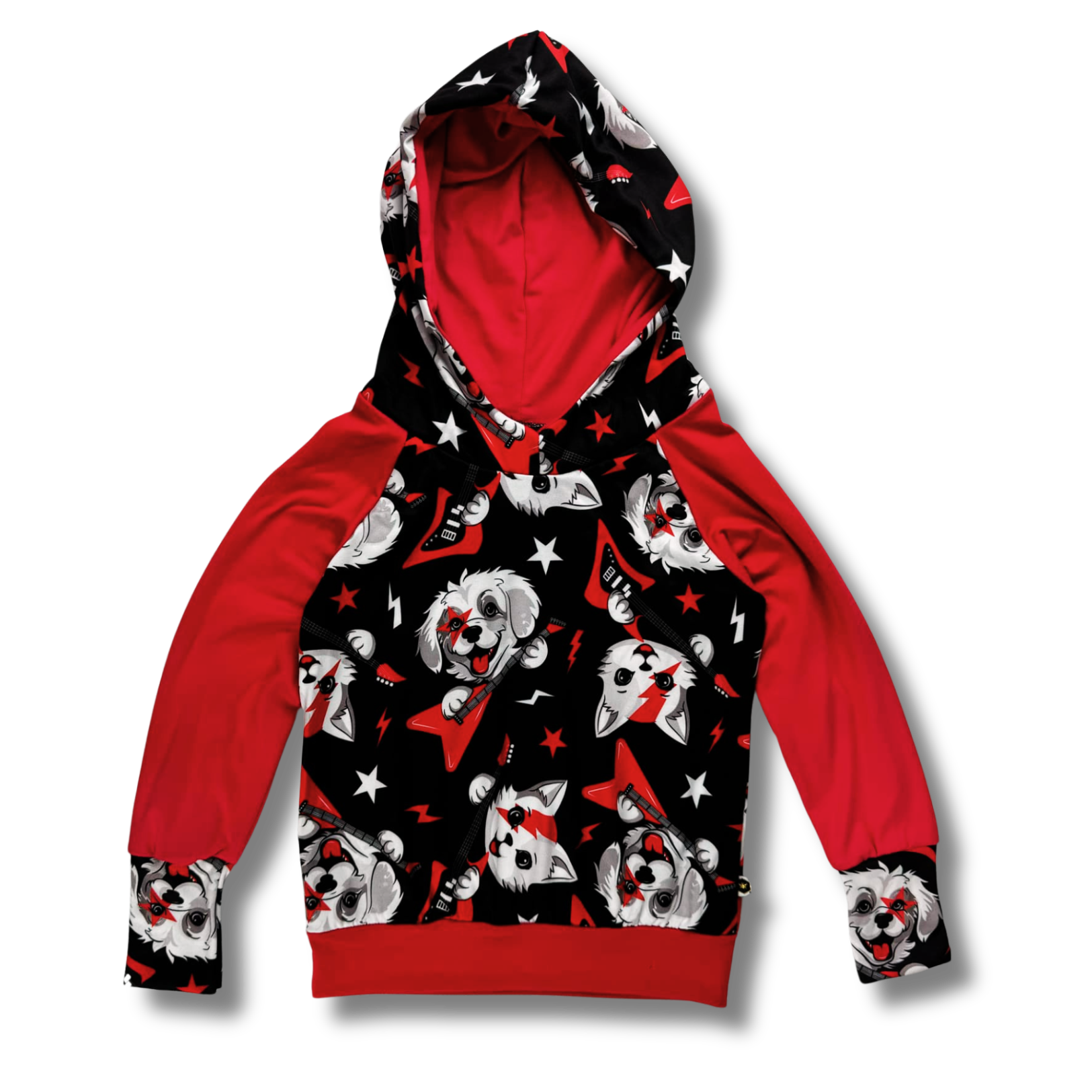 Hoodies may be machine dried on low or medium heat with like fabrics. Washing or drying with rough fabrics or velcro items may cause snags or pulls.