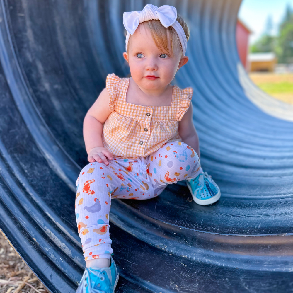 Our Joggers feature a decorative drawstring, pockets (in all sizes but 0-6), and grow-with-me style cuffs. Made out of our signature poly/spandex fabric, these pants will allow your little ones to grow and play in style and comfort.