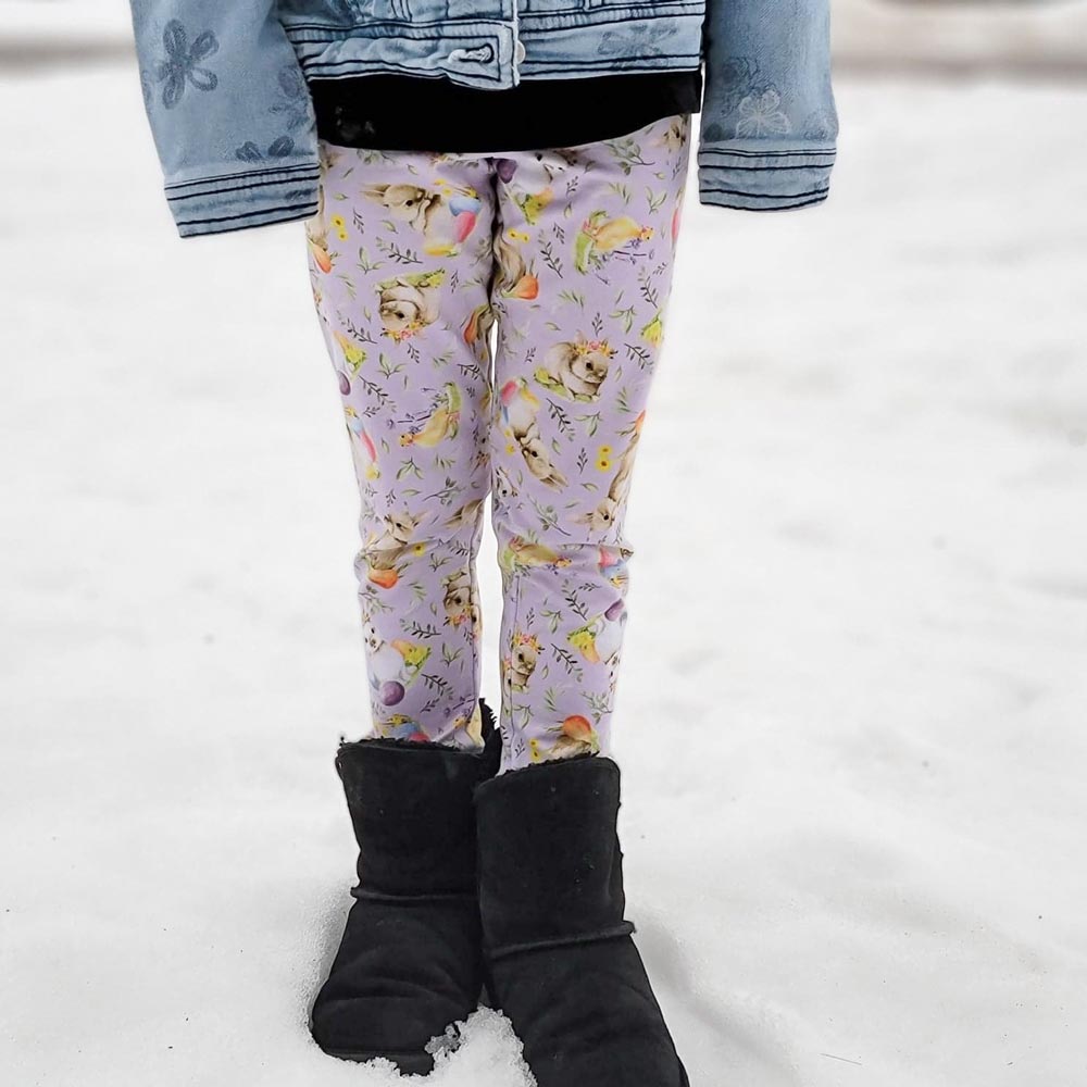 Leggings may be machine dried on low or medium heat with like fabrics. Washing or drying with rough fabrics or velcro items may cause snags or pulls.