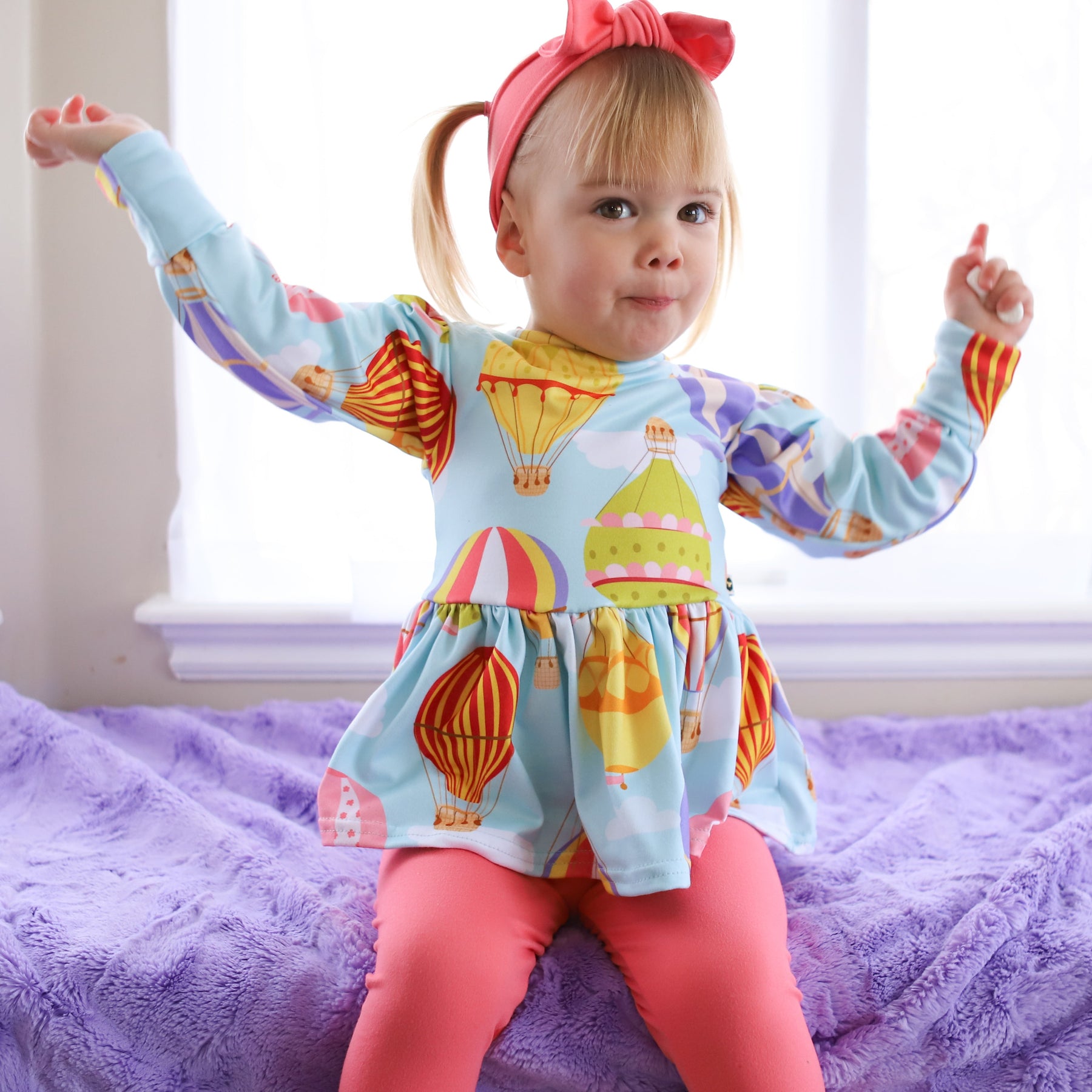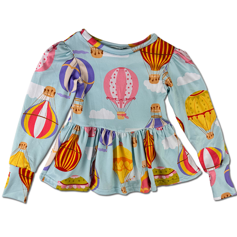 This top features a vibrant print, or solid, on our buttery soft & stretchy polyester, which provides comfort but also holds up to toddler play and washing. With this flowy top, even the most active little ones will be able to move and grow comfortably in their new favorite peplum!