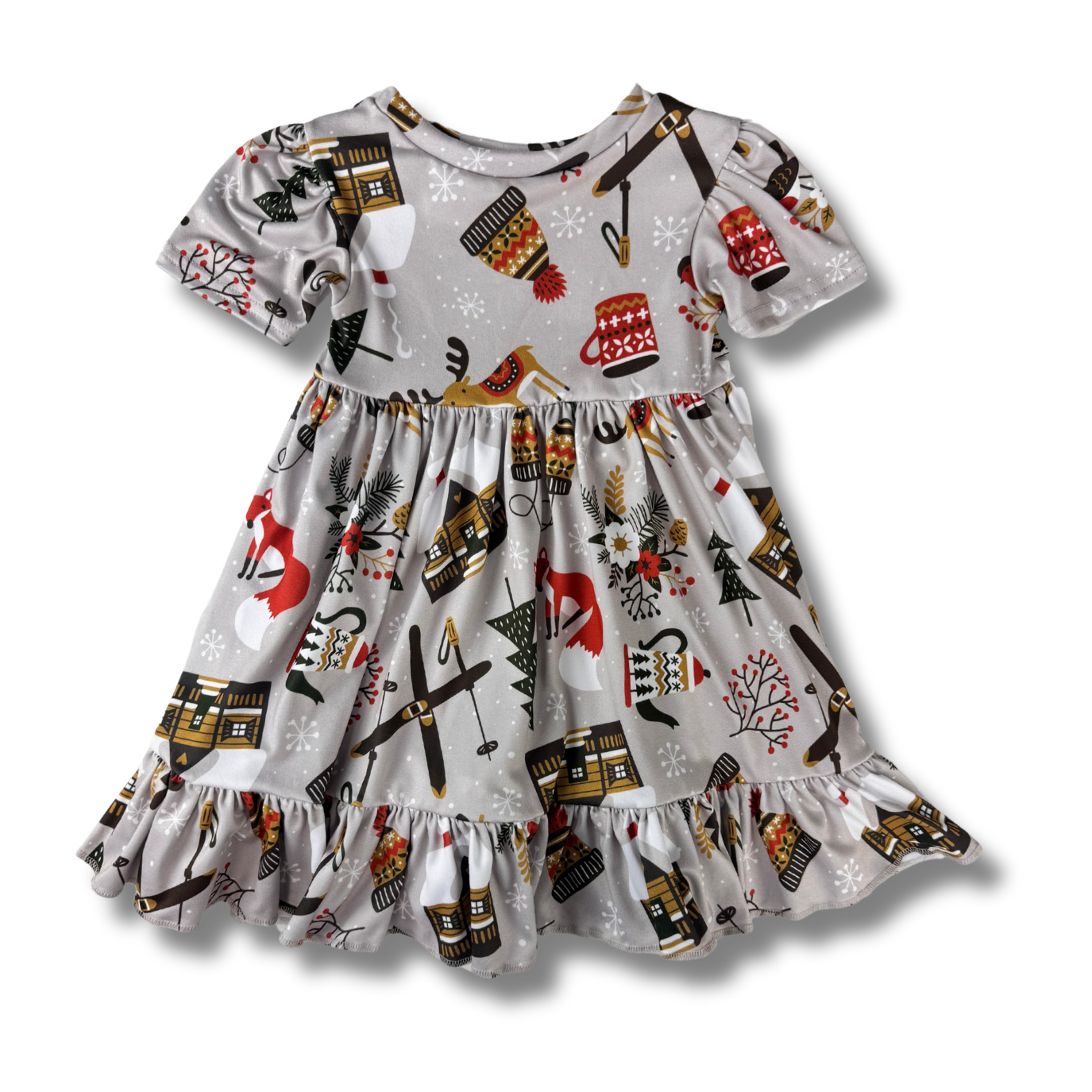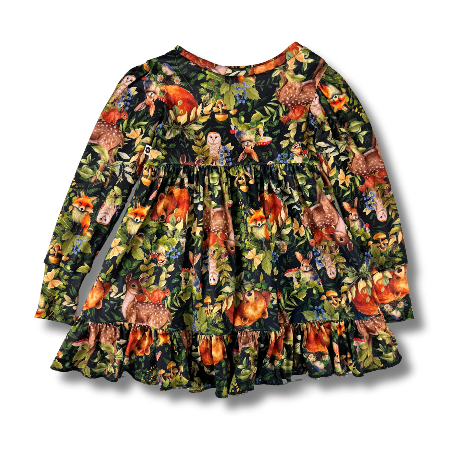 This dress features a vibrant print, or solid, on our buttery soft & stretchy polyester, which provides comfort but also holds up to toddler play and washing. With this flutter sleeve dress, even the most active little ones will be able to move and grow comfortably in their new favorite twirlable dress.