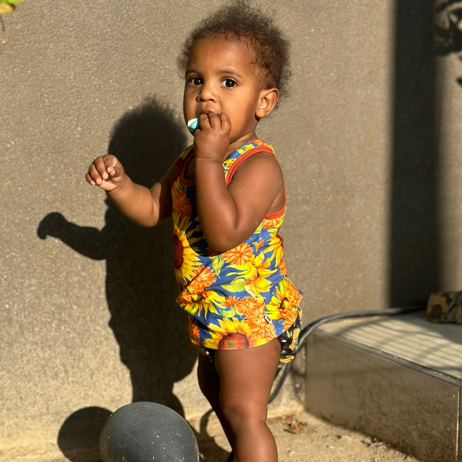 This Tank Top features our signature soft and stretchy fabric. These tops pair great with our bumblito bottoms to perfectly complete an outfit.