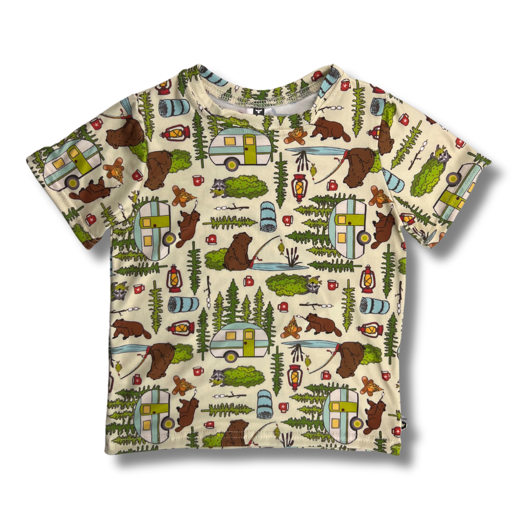 This tee features our signature soft and stretchy fabric. These shirts pair great with our bumblito bottoms to perfectly complete an outfit.