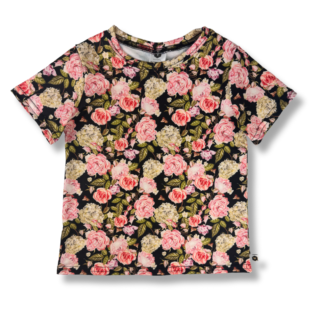 This tee features our signature soft and stretchy fabric. These shirts pair great with our bumblito bottoms to perfectly complete an outfit.