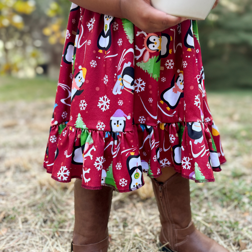 This dress features our buttery soft & stretchy poly/spandex fabric, which provides comfort but also holds up to toddler play and washing. The ruffle on the bottom of the dress will make your little one want to twirl all day. Dress features two pockets, one on each side for storing treasures. Dress should fit at the knee for a child on the smaller of the size range & above the knee for a child at the top of the range. Twirls can be pair well with our cartwheel shorts.