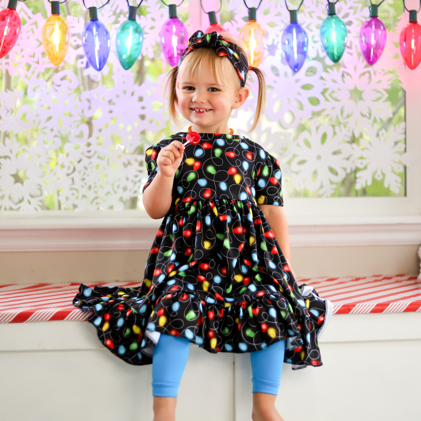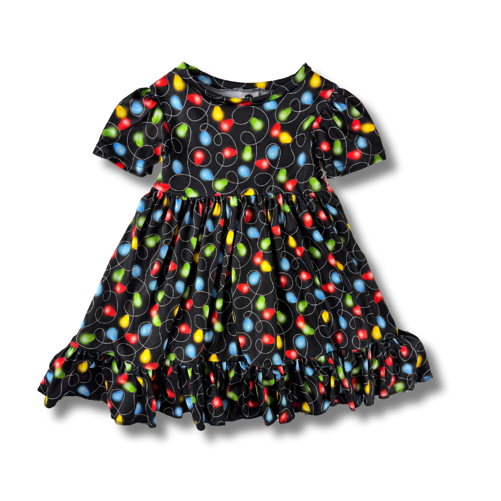 This dress features our buttery soft & stretchy poly/spandex fabric, which provides comfort but also holds up to toddler play and washing. The ruffle on the bottom of the dress will make your little one want to twirl all day. Dress features two pockets, one on each side for storing treasures. Dress should fit at the knee for a child on the smaller of the size range & above the knee for a child at the top of the range.  Twirls can be pair well with our cartwheel shorts.
