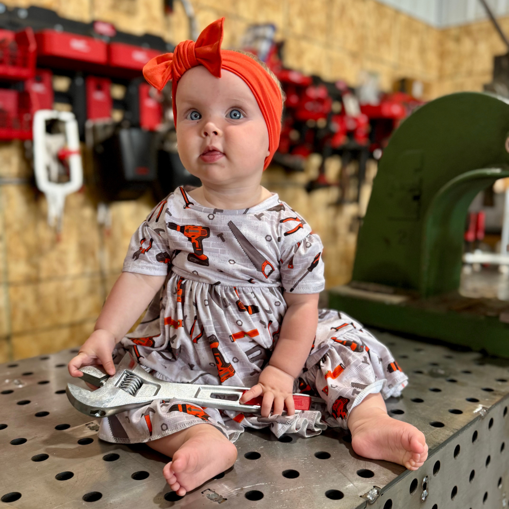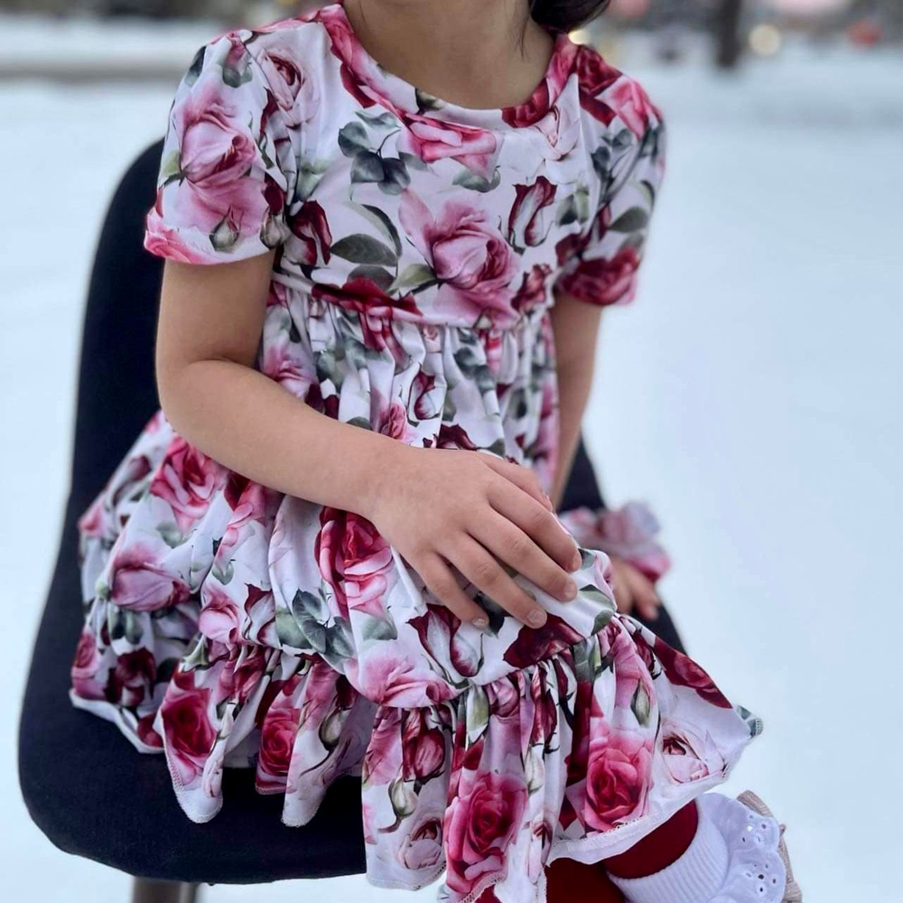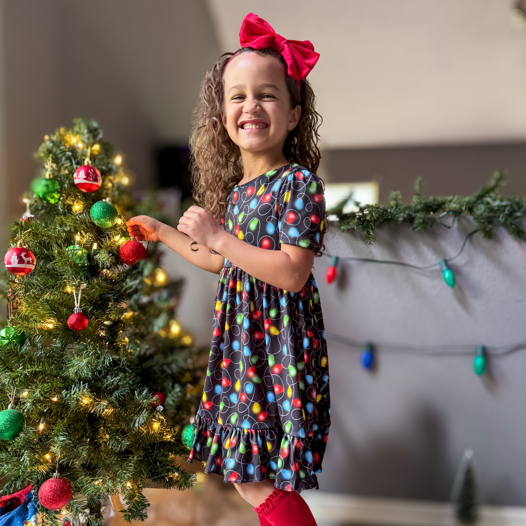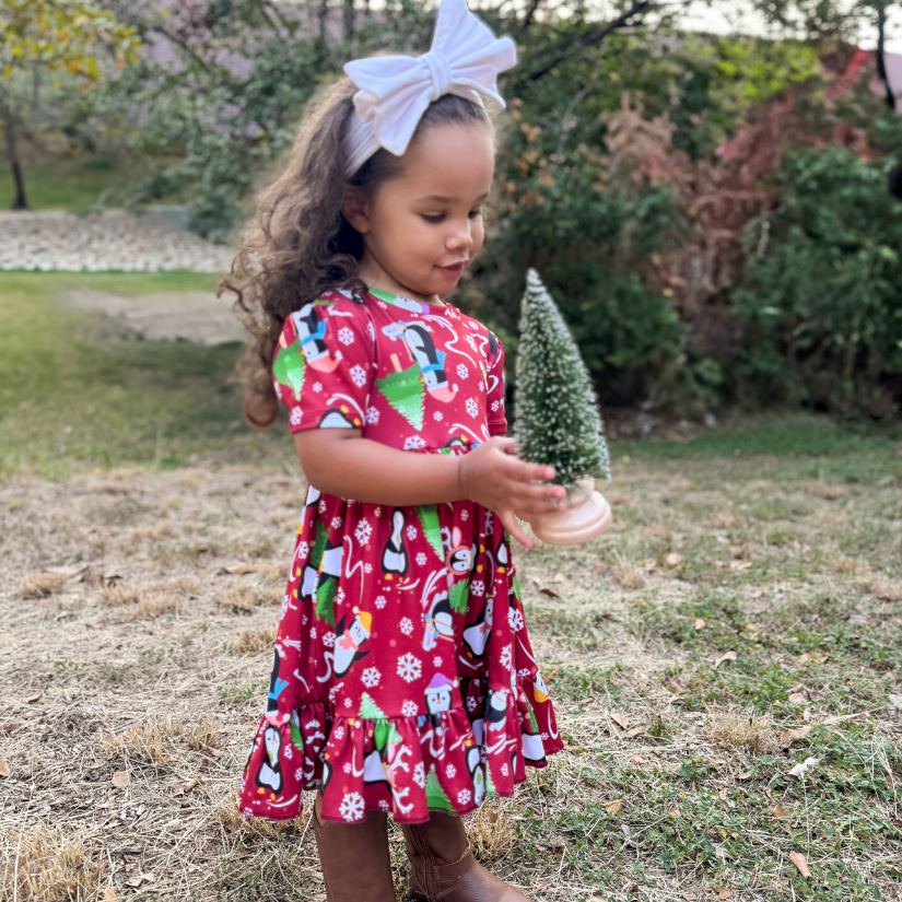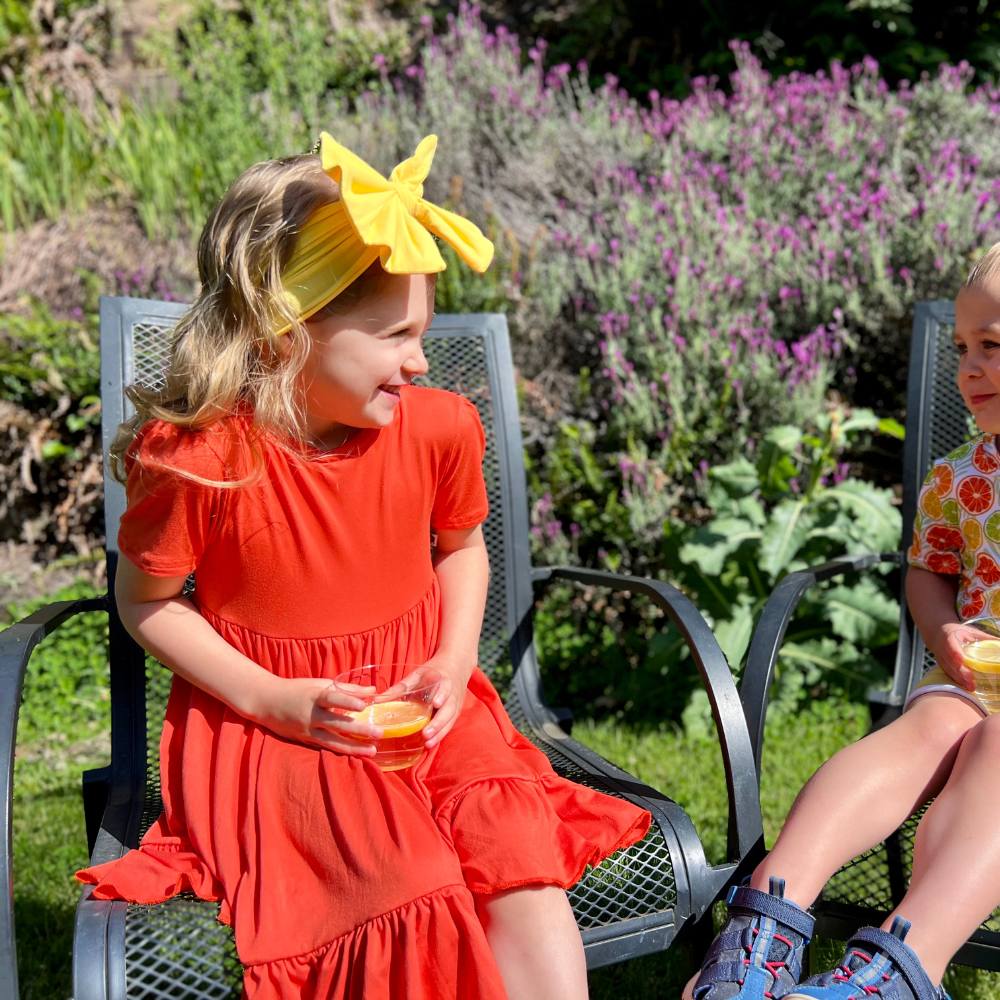 This dress features our buttery soft & stretchy poly/spandex fabric, which provides comfort but also holds up to toddler play and washing. The ruffle on the bottom of the dress will make your little one want to twirl all day. Dress features two pockets, one on each side for storing treasures. Dress should fit at the knee for a child on the smaller of the size range & above the knee for a child at the top of the range. Twirls can be pair well with our cartwheel shorts.