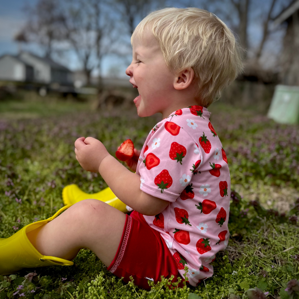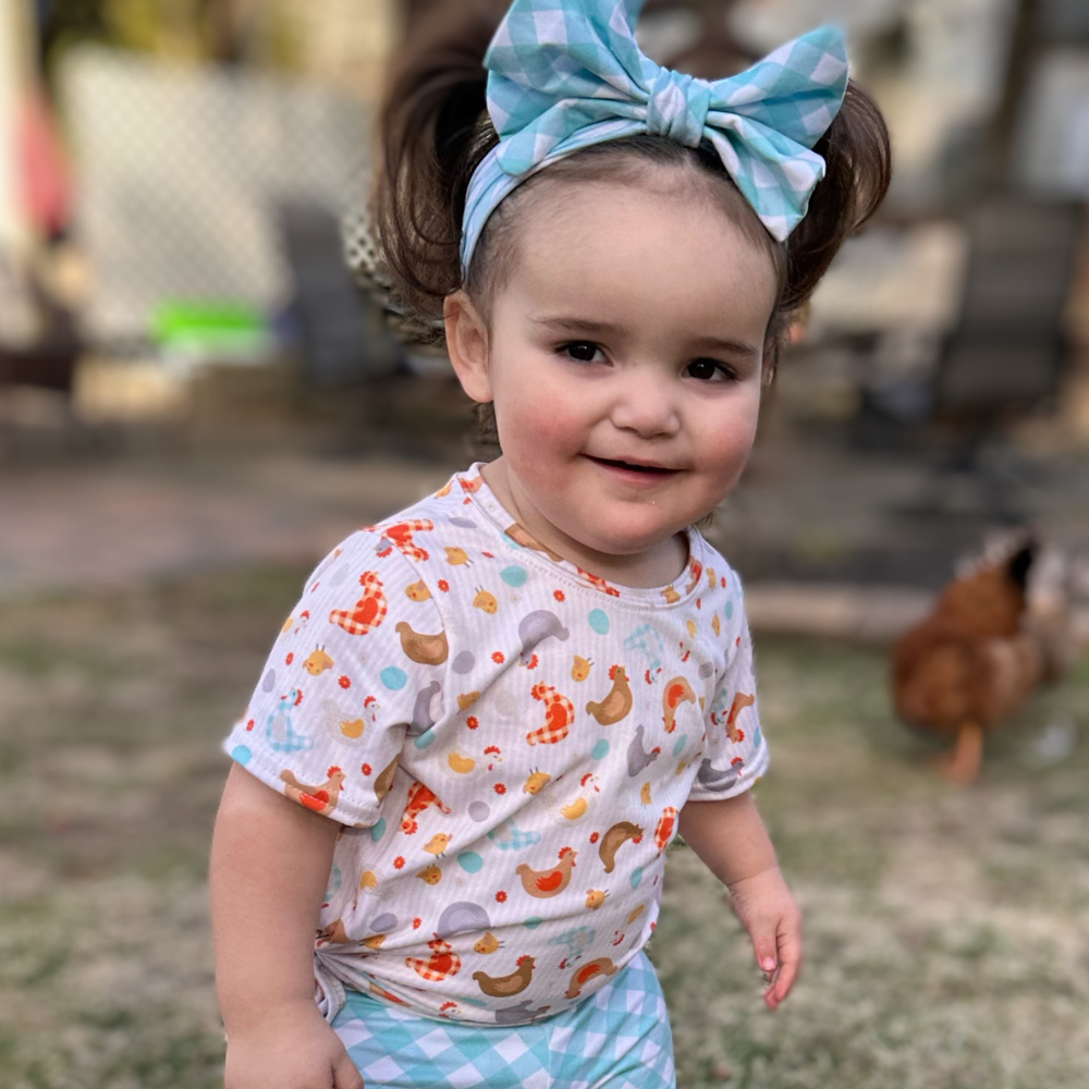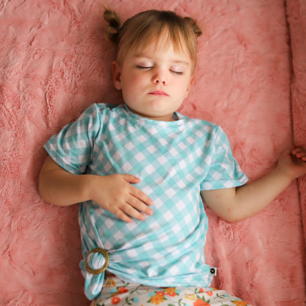 This tee features our soft and stretchy bumblito fabric in combined prints and solids. These tees are stretchy, buttery soft, and made to move and grow with your child. Our tees can be paired with our bumblito bottoms to perfectly complete an outfit.