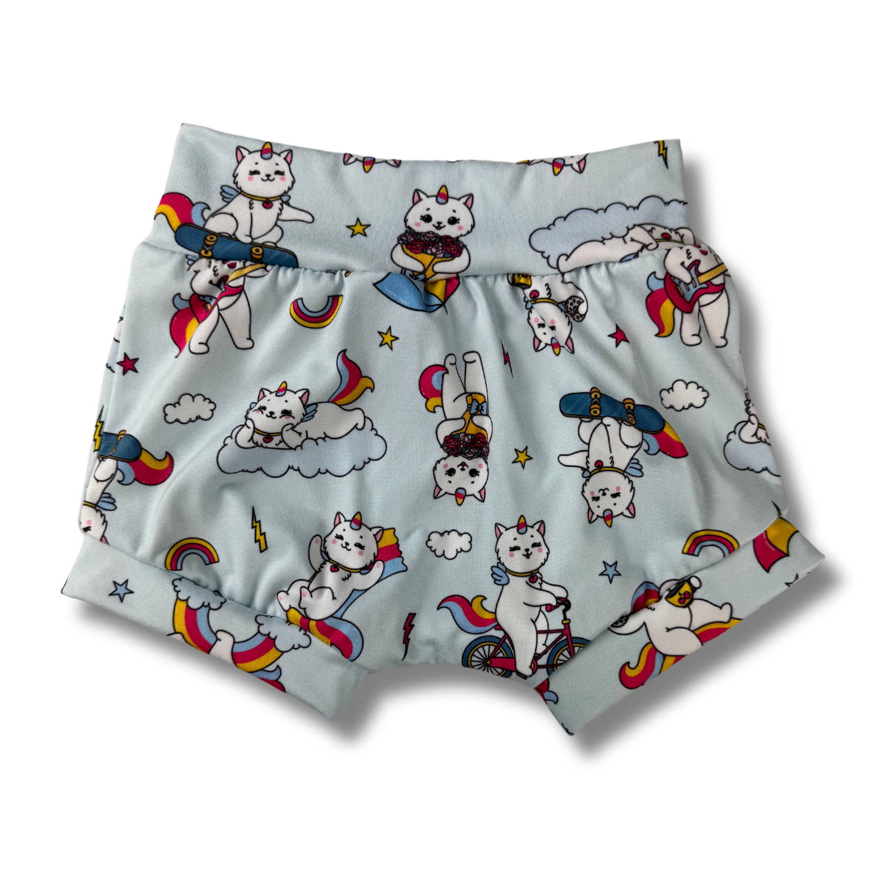 Shorties may be machine dried on low or medium heat with like fabrics. Washing or drying with rough fabrics or velcro items may cause snags or pulls