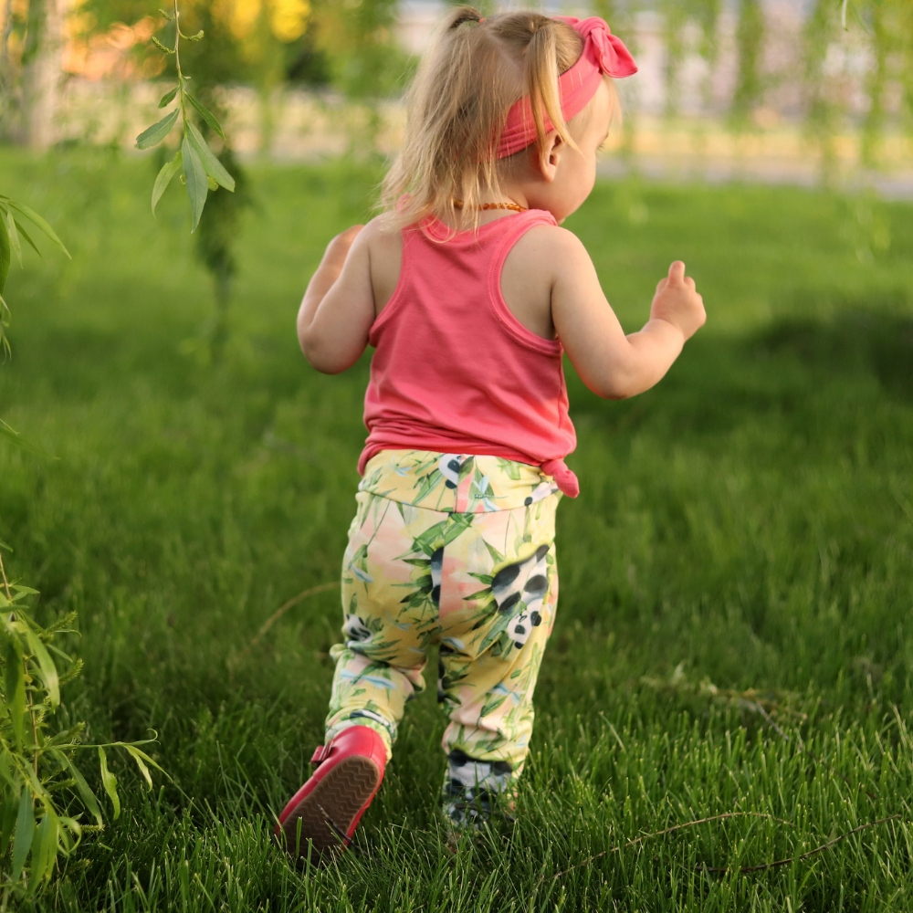 Soft, stretchy, simply perfect for your little one's little legs! Vibrant prints on 95% polyester + 5% Spandex mean they stand up to washing and play, while being the perfect completion to any outfit.