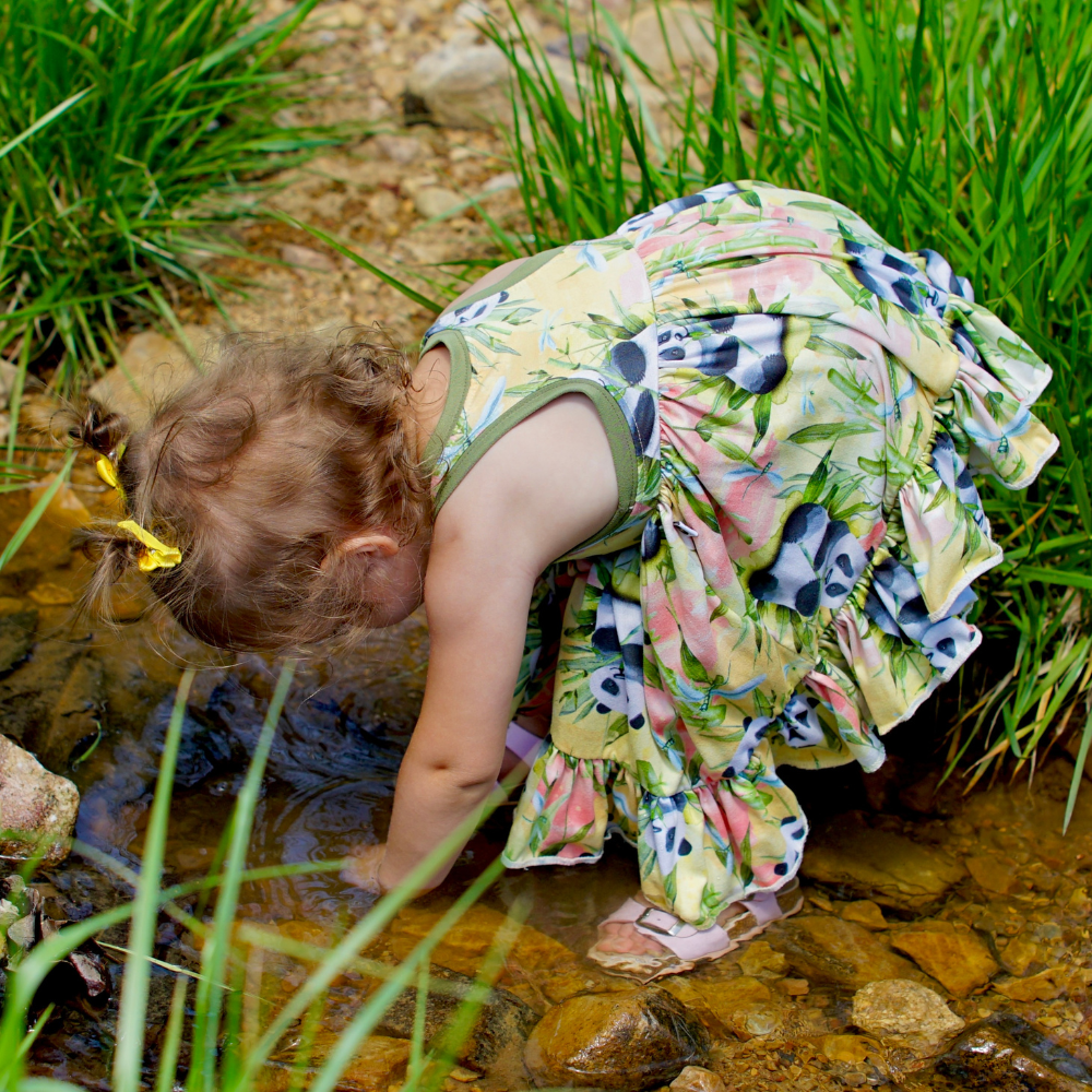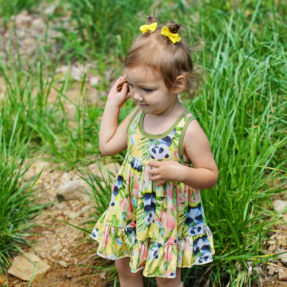 This magical dress is made from the softest poly/spandex fabric, perfect for endless adventures and countless laundry spins. With a cute tank-style top, it's a must-have for sunny playdates. The twirly ruffle at the bottom will keep your little one spinning all day long. Plus, there are two secret pockets for stashing tiny treasures. Depending on your kiddo's size, it'll hit at the knee for the little ones and slightly above for the bigger tots. Mix and match with our cartwheel shorts for the ultimate playtime ensemble!